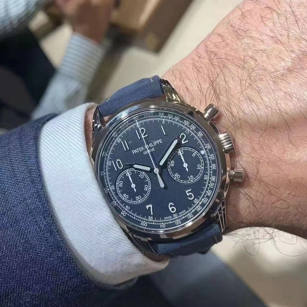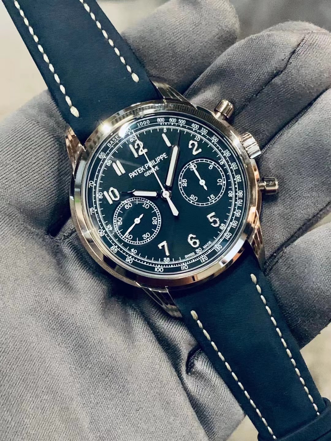 百达翡丽复杂功能时计系列5172G-001腕表 品牌:百达翡丽 系列:复杂功能时计 型号:PP5172G-001 款式:手动机械,41毫米,男士 材质:18k白金 功能:计时 上市:2019年 表壳厚度:11.45毫米 表盘颜色:深蓝 表盘形状:圆形 表带颜色:海军蓝 表扣类型:折叠扣 表底:背透 防水深度:30米 时标类型:阿拉伯数字,夜光 表盘材质:蓝色涂漆,覆荧光涂层的金质立体字块。 准距仪刻度 表圈材质:18k白金 表镜材质:蓝宝石水晶玻璃 表冠材质:18k白金 表扣材质:18k白金 详情请咨询官方电话: 15679987654 (长按复制) 详情请咨询官方微信: 15679987654 (长按复制) |