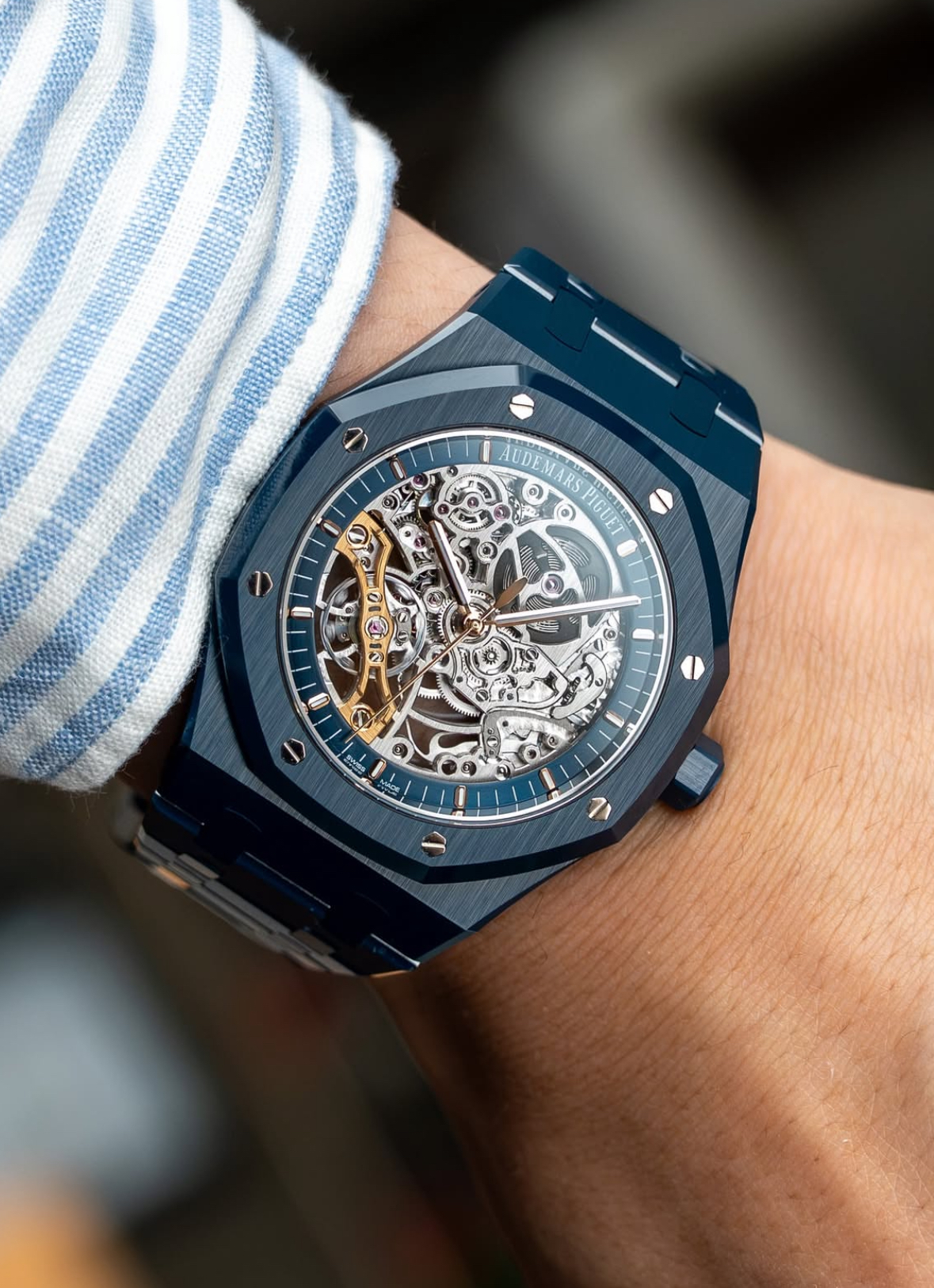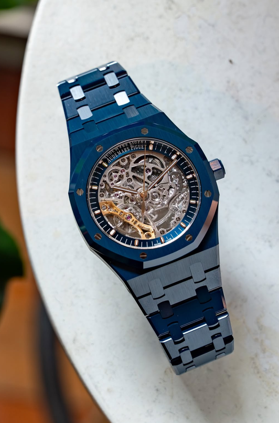 新款蓝色内敛至极,远看近乎黑色,近观却能展现独特魅力。没错,它会根据光线质量与角度,从浓郁的深蓝变为柔和的浅调。抛开光学原理,若有幸购得此表,您会发现它更接近本纳明亚最初构想的那种深邃蓝色。