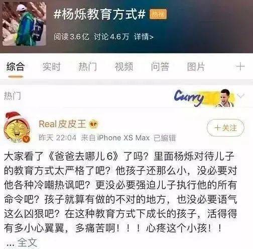 在《爸爸去哪儿6》中“小包总”杨烁命令式教育儿子杨雨辰上了热搜。