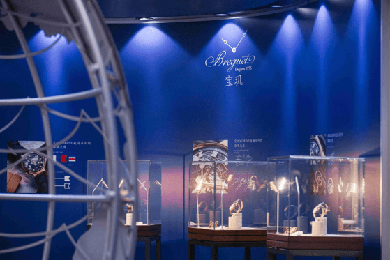 宝玑Marine航海系列全国巡展——天津站 展览的设计灵感源于浩瀚海洋,以尊贵宝玑蓝为主色调,诸多细节之处皆与宝玑独特而极具标志性的大胆动感美学风格相呼应。展厅外立面有四幅画面呈现宝玑现代航海系列的时计臻品,亦以“历史航程,凝萃腕间 ”、“隽永美学,领航时光”、“卓越创新,开拓先锋” 和“精湛技艺,方寸寰宇”四句标语,将宝玑历史、美学、创新及技艺全然展现。步入展厅,Marine航海系列5557 Hora Mundi世界时腕表平面表盘立体化的“地仪”跃然眼前,可供观展嘉宾体验的互动装置环绕其中,一览此腕表惊艳的可记忆瞬时时区跳转功能。此外,可于展厅一角领略宝玑航海系列的璀璨历程,另一边的橱窗陈列着宝玑多枚堪称“传奇之作”的时计作品,引领嘉宾沉浸于品牌深厚底蕴中的航海情怀与卓越的制表技艺。到场宾客在静谧的空间可潜心探寻大航海时代宝玑先生倾注于航海事业与钟表发展的无尽瑰宝。